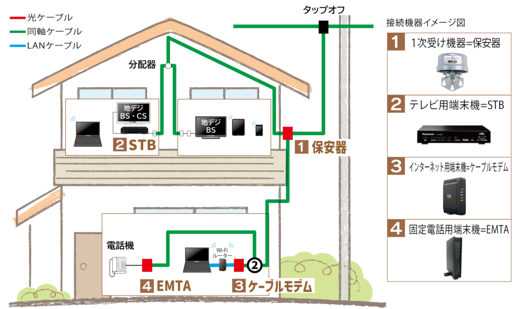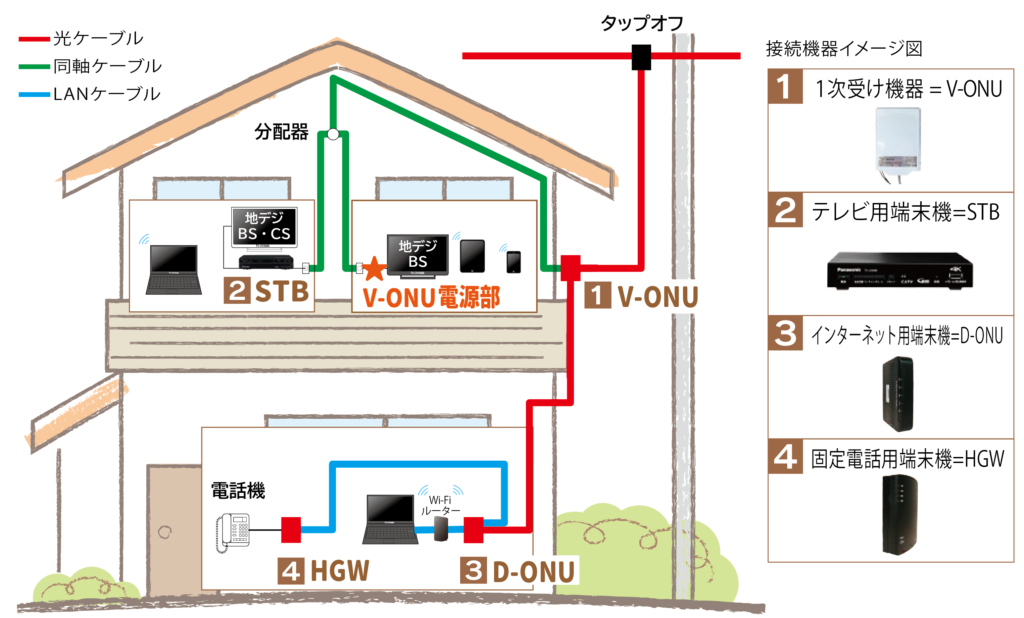 - 既存の「同軸ケーブル」・「保安器」は撤去します