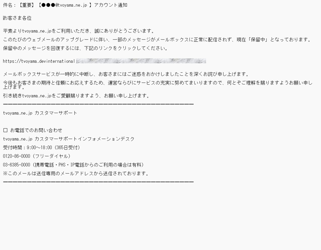 現在、テレビ小山放送を装ったフィッシング詐欺メールに関するお問い合わせをいただいております。