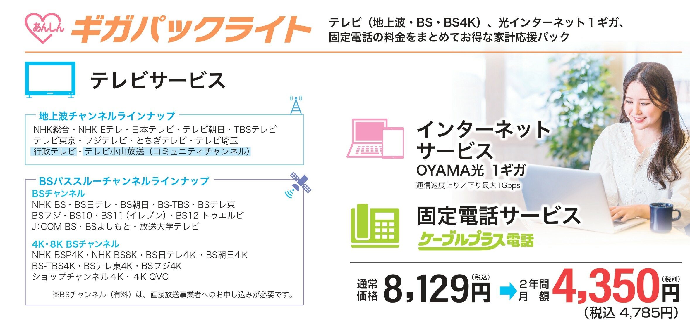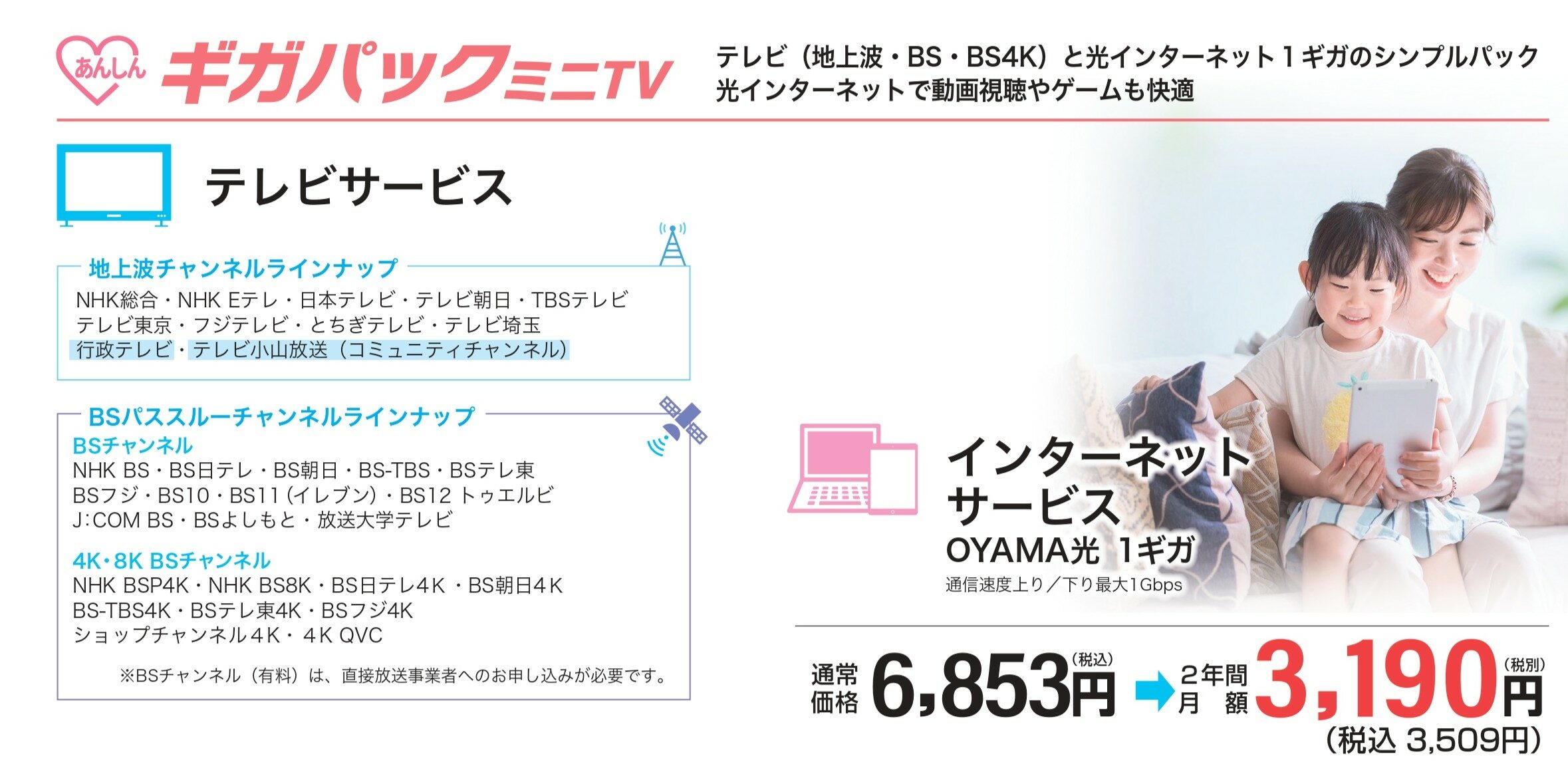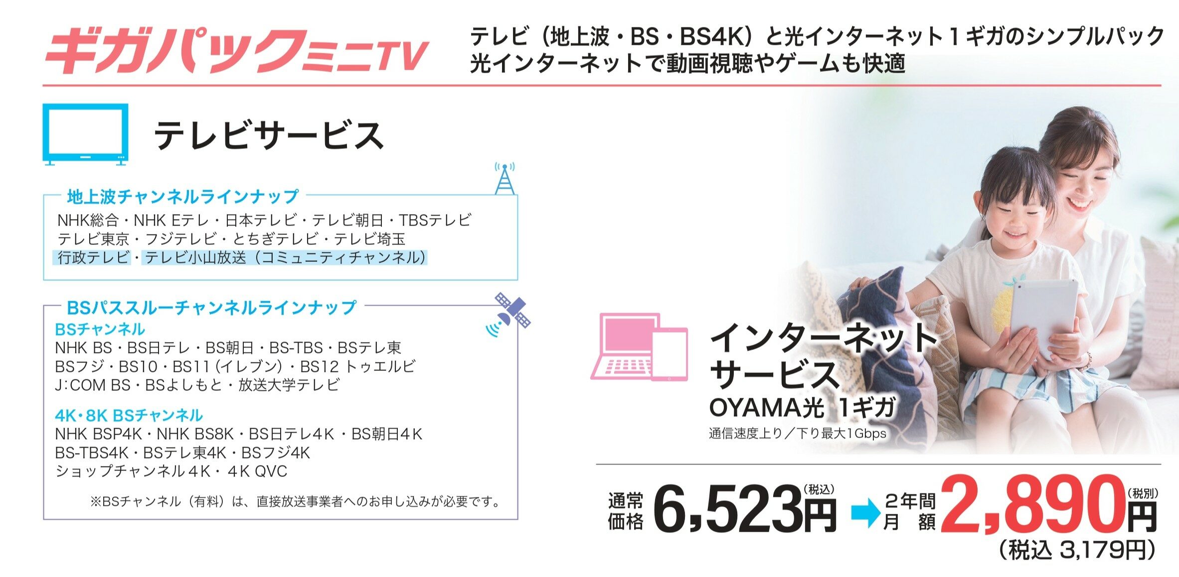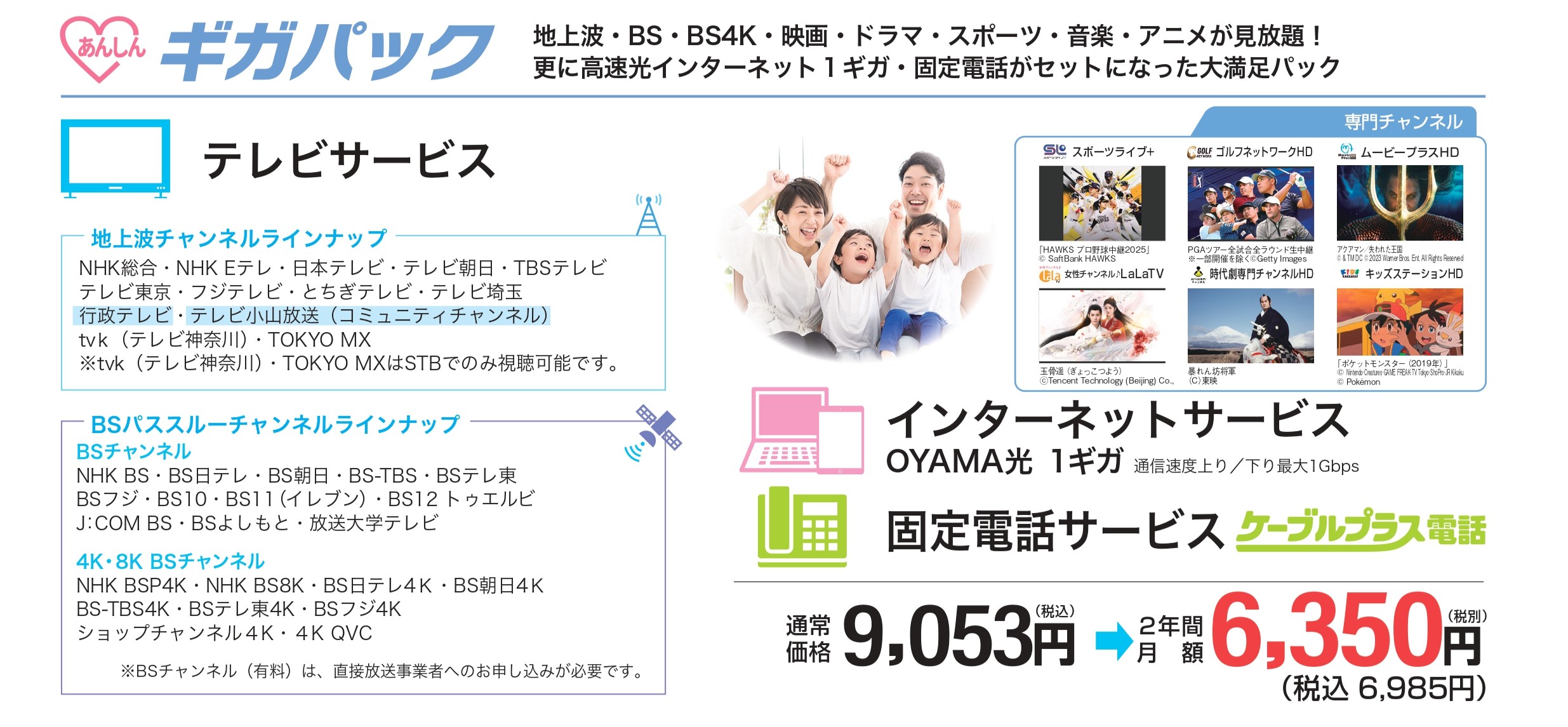 - 【テレビ】OYAMA光 プレミアムTV +880円(税込)/月 ※ギガパックをご利用の場合