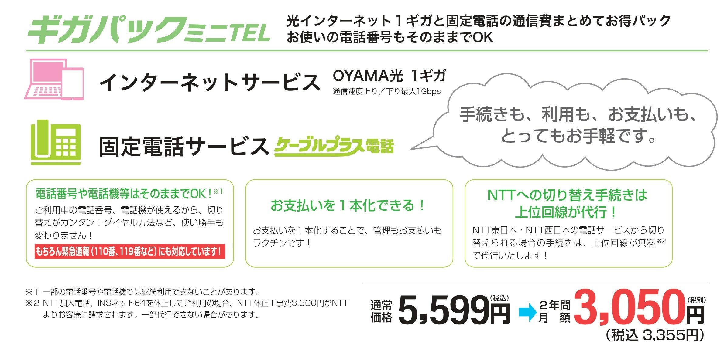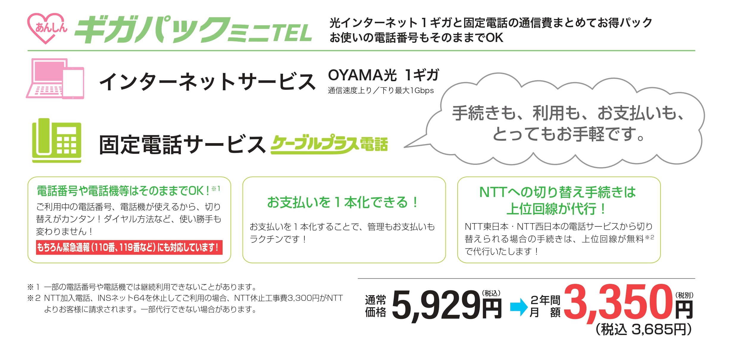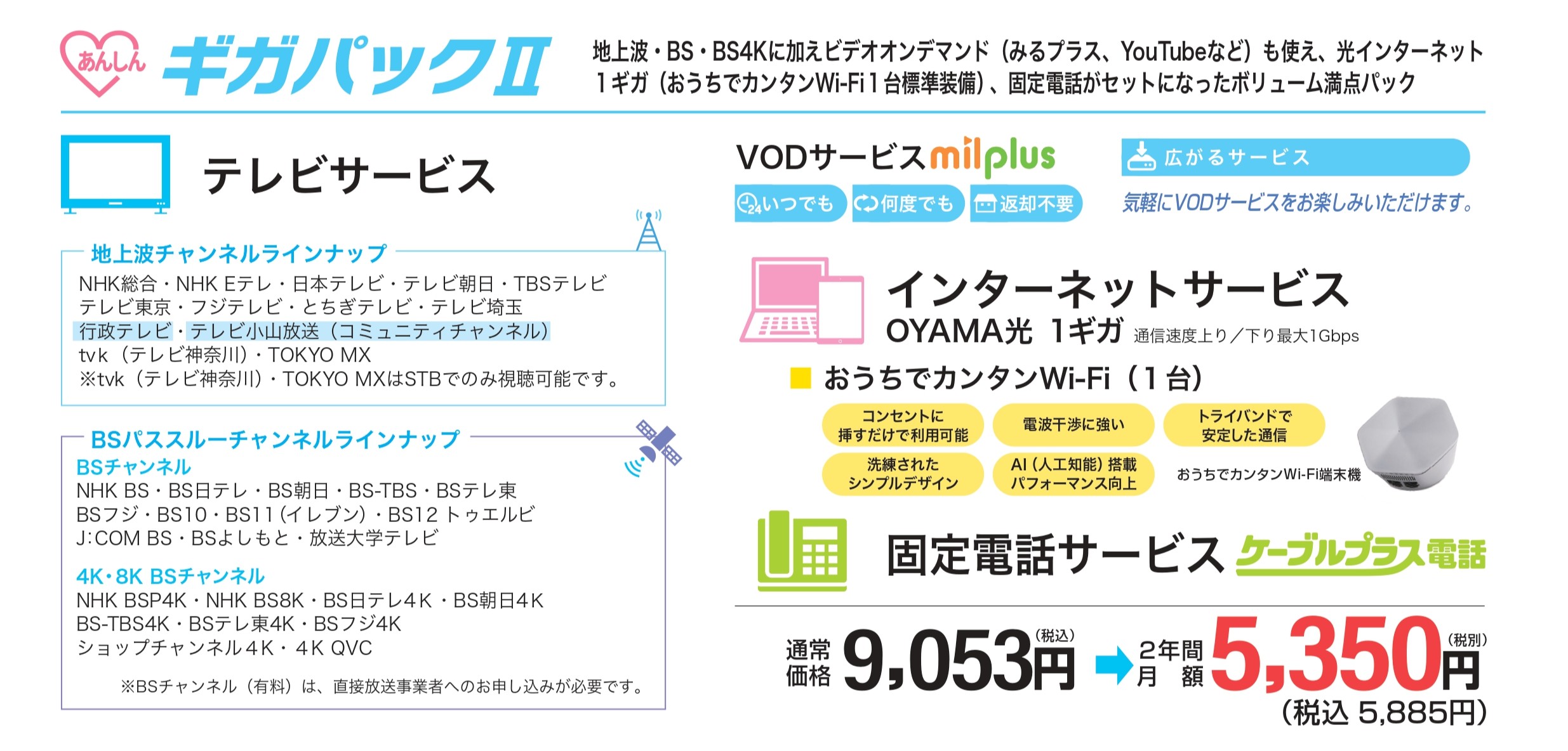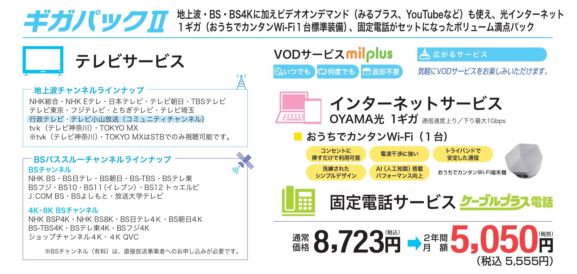 - 【テレビ】OYAMA光 プレミアムTV +880円(税込)/月 ※ギガパックをご利用の場合