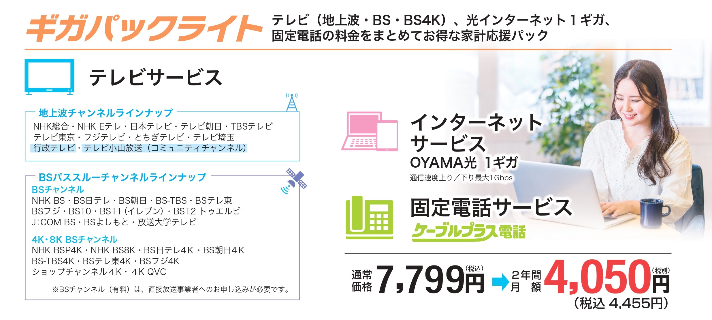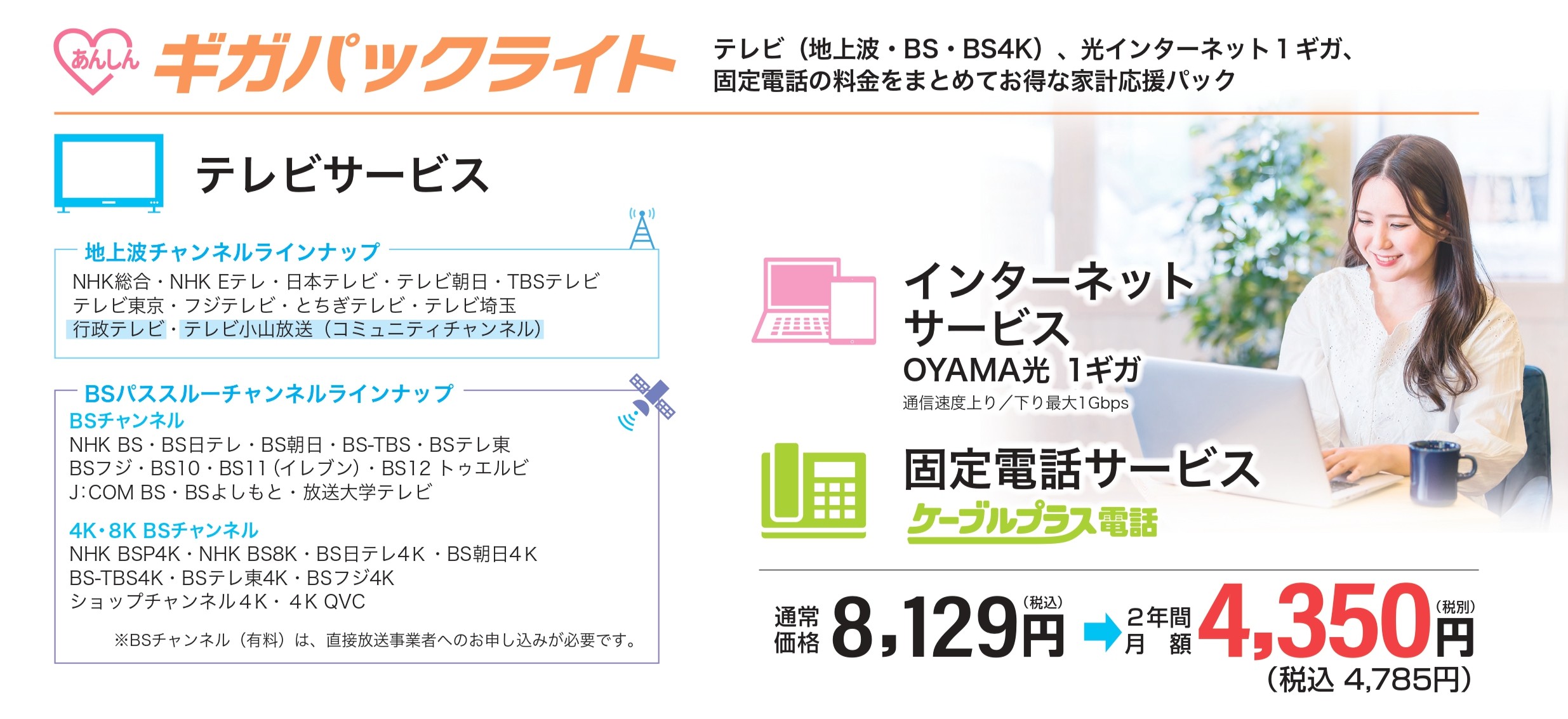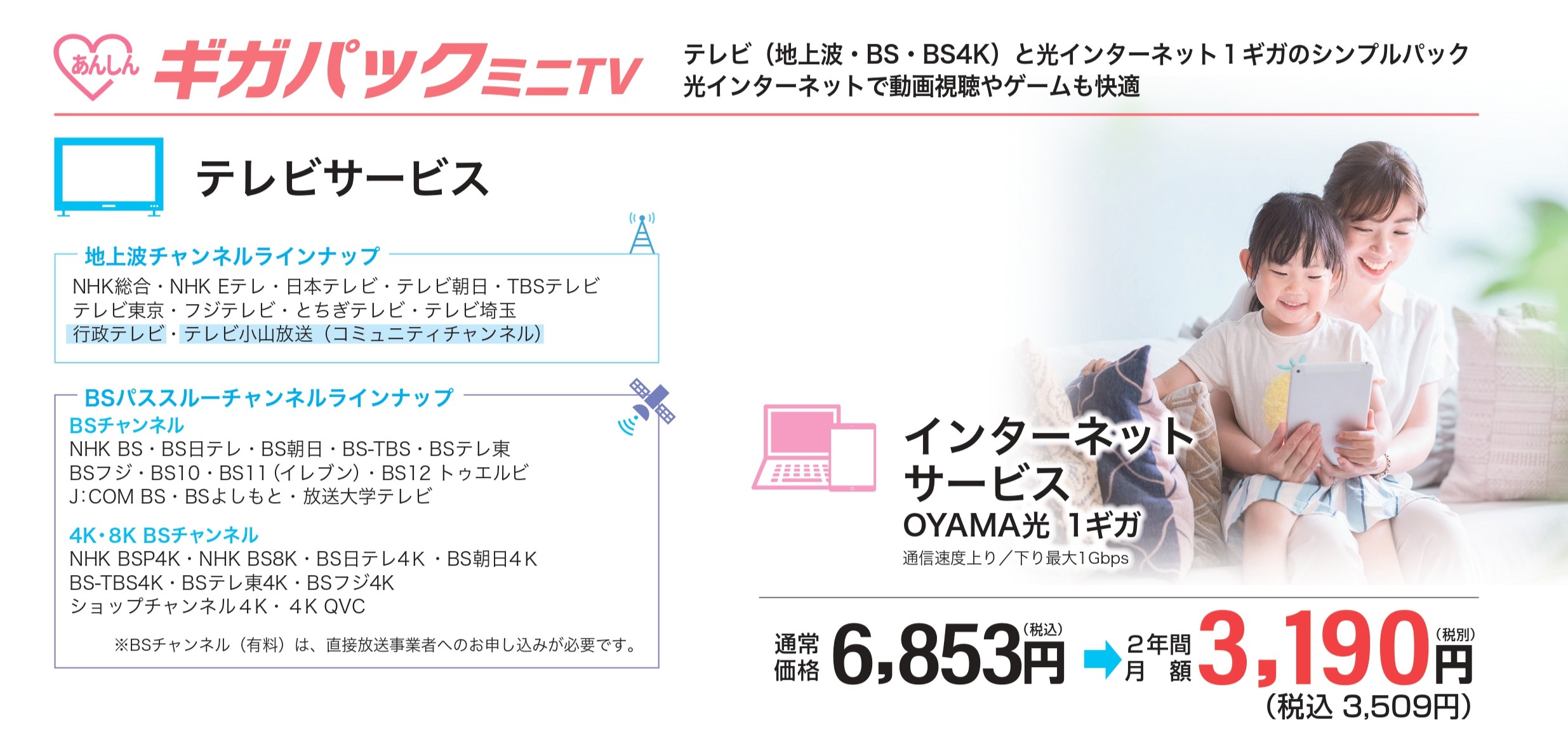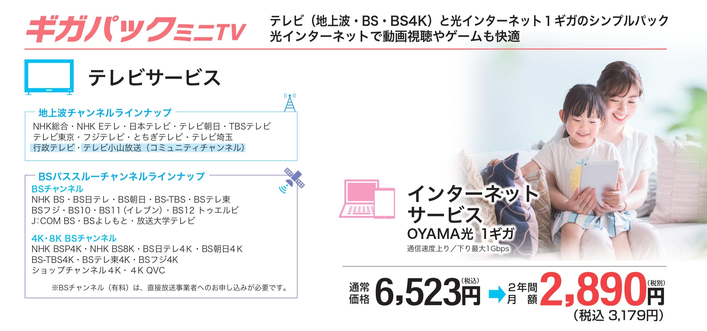 - 【テレビ】OYAMA光 プレミアムTV +880円/月 ※ギガパックをご利用の場合
