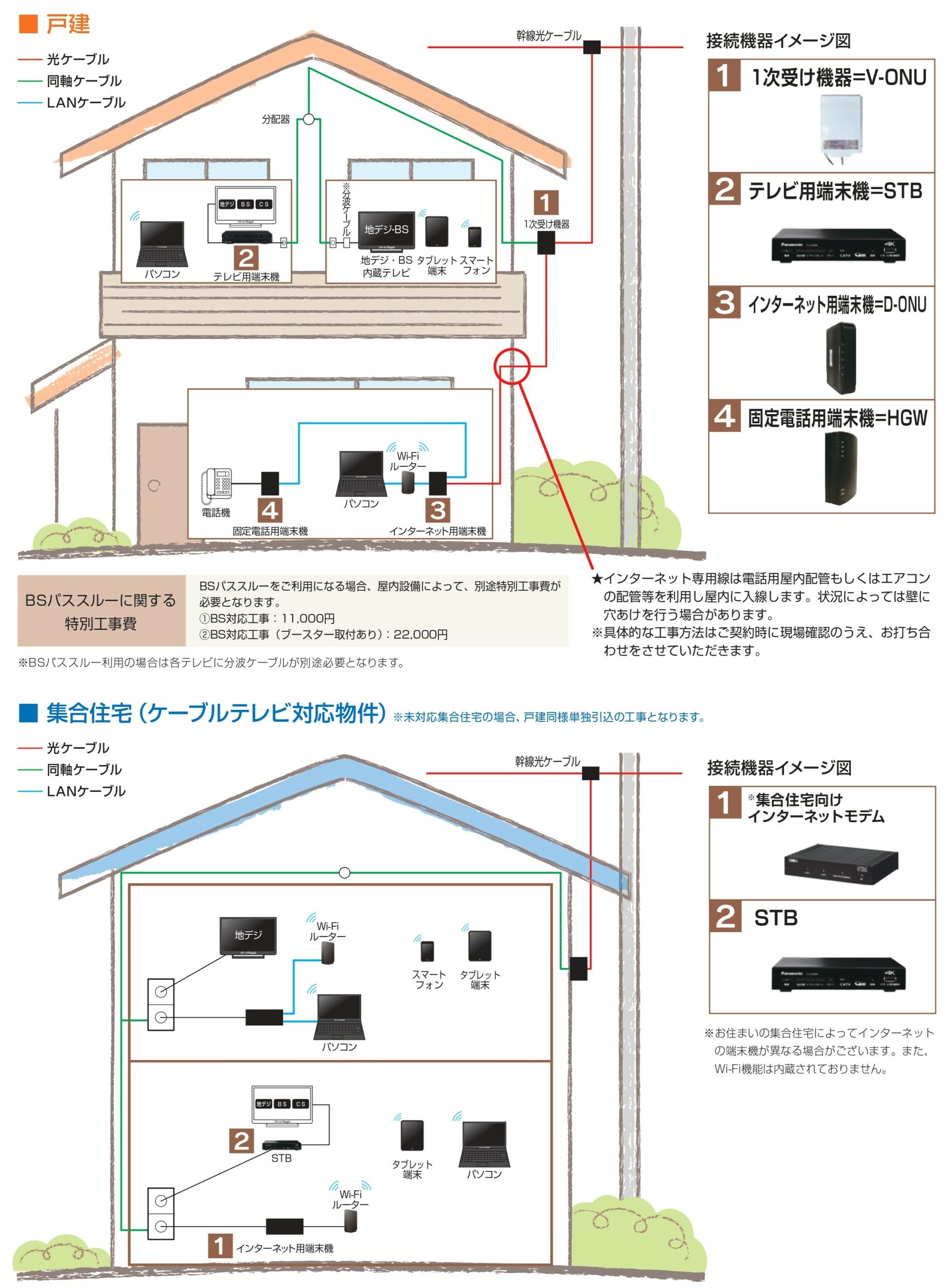 ※未成年の方はご契約いただけません。※建物の構造や施工方法、テレビ端子数等により、特別工事費が必要となる場合があります。※インターネットサービスの宅内工事は単独配線(露出配線)となります。※通信速度は利用する端末(パソコン等)や時間帯により実効速度は変わります。ベストエフォート型サービスのため通信速度を保証するものではありません。※OYAMA光10ギガをご利用の場合、お客様宅のインターネット接続環境において「10GBASE-T」という規格に対応したパソコンやルータなどの周辺機器やLANケーブル(カテゴリ7A以上)が必要となります。※当社ご利用料金にNHK受信料(地上・衛星)は含まれておりません。※BS及びBS4K放送を視聴する為に改修工事が必要な場合、必要に応じて別途改修費用が必要となります。※お支払方法は、金融機関(小山市内に本店・支店・出張所・営業所のある金融機関)、ゆうちょ銀行からの口座振替又はクレジットカード(VISA、MasterCard、JCB、AmericanExpress、DinersClubInternational)がご利用いただけます。※USB-HDDなどに録画したデータが消失・破損した場合、これにより生じた損害については、原因の如何を問わず当社は一切責任を負いません。※落雷による屋内電化製品等の故障については保証いたしません。※各端末機は貸与品(リモコン除く)であるため、故障・不具合等による端末機交換は無料となります。但し、故意又は過失により破損・紛失した場合、その相当分をお支払いいただきます。※ご解約の際は別途解約撤去費が必要となります。また、ご利用いただいた期間によっては別途解除料が必要となる場合があります。